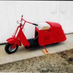 1960 Cushman 8 Hp Super Eagle, white with factory sidecar. Also selling a 12′ X 7′ enclosed trailer for it. I bought this scooter in 1990 and did a complete restoration myself. It has 12 miles on it since that time. The sidecar box was Junk when I acquired it and has been replicated with the original aluminum box. I have a few boxes of parts, manuals and misc stuff that will go with them.