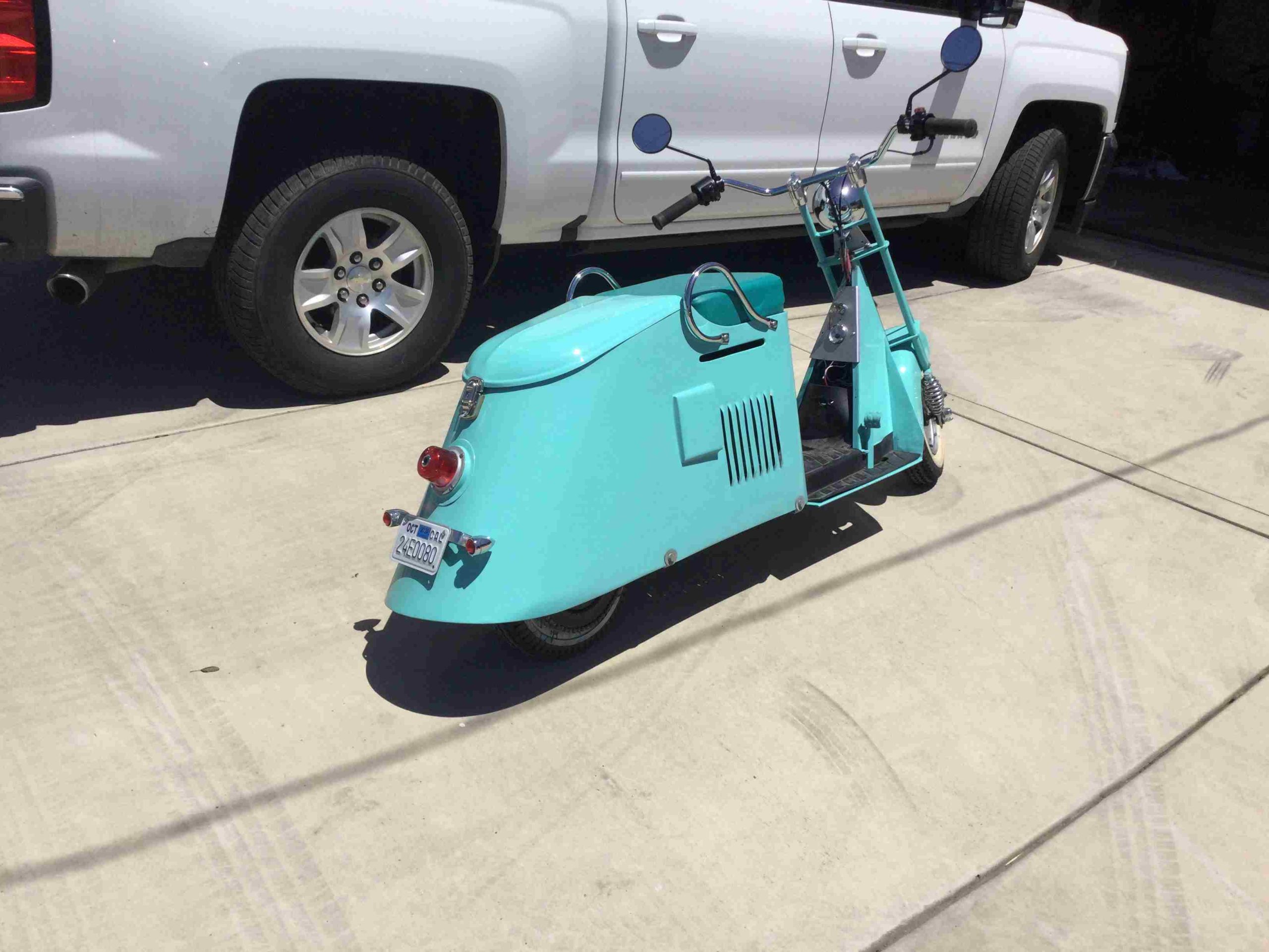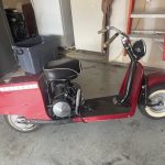 1957 Eagle blue, restored, needs a fuel bowl and fuel line. I bought this scooter from a friend’s estate. I know nothing about its history but I do know it was restored and running at some point in time. I have owned it for 7 years. I have never taken the time to get it running but I know from the condition it was in when I bought it that it had been ridden.  It is a Very Nice Scooter!