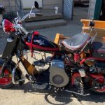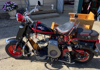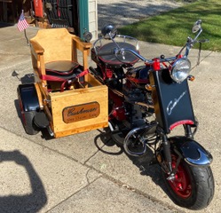 Good high compression motor with Aluminum head and oil pan. 138 cc. Less than 20 miles on the motor. New camshaft with larger intake and exhaust valves, ported and polished. ES3 electric starter 12-volt. Manual 2-speed transmission. Spark plug holder. Steering stabilizer. Fork bearings. Mikuni carburetor 22mm. Vintage Cushman speedometer. Safety bars. 3 10” wheels powdered coated red, with 3 new tires. Chain adjuster. Original Cushman sidecar frame with custom wooden box, 3 custom seat cushions. Turn signals, universal 12-volt horn, and Vintage Klaxon bicycle horn. Gremlin bells, and tool pouches. Over $8K invested in parts. Michigan motorcycle title. Will not ship or deliver. Price is firm and nonnegotiable.