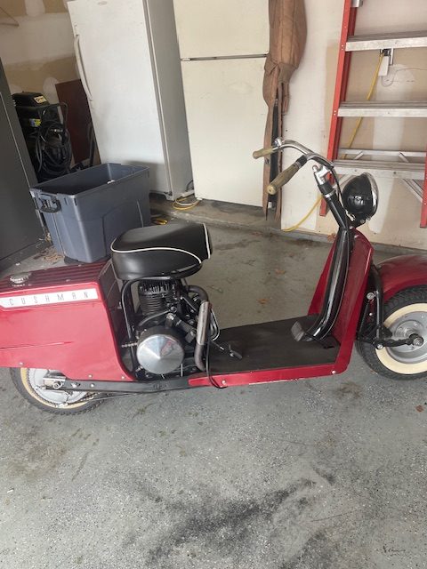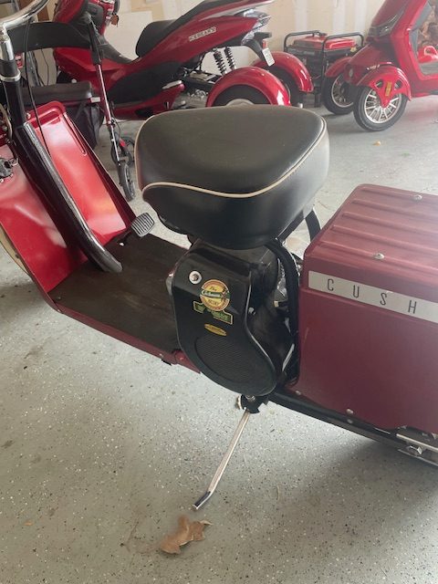 Very nice 1952 Cushman Motor Scooter Model series 60 from estate. Two speed runs out great. Easy starting, don’t know horse power,. Have had lots of fun with it but now at age 86 wife says no more. Have title, priced right. RED 309-224-8998 for more info. Peoria, Il